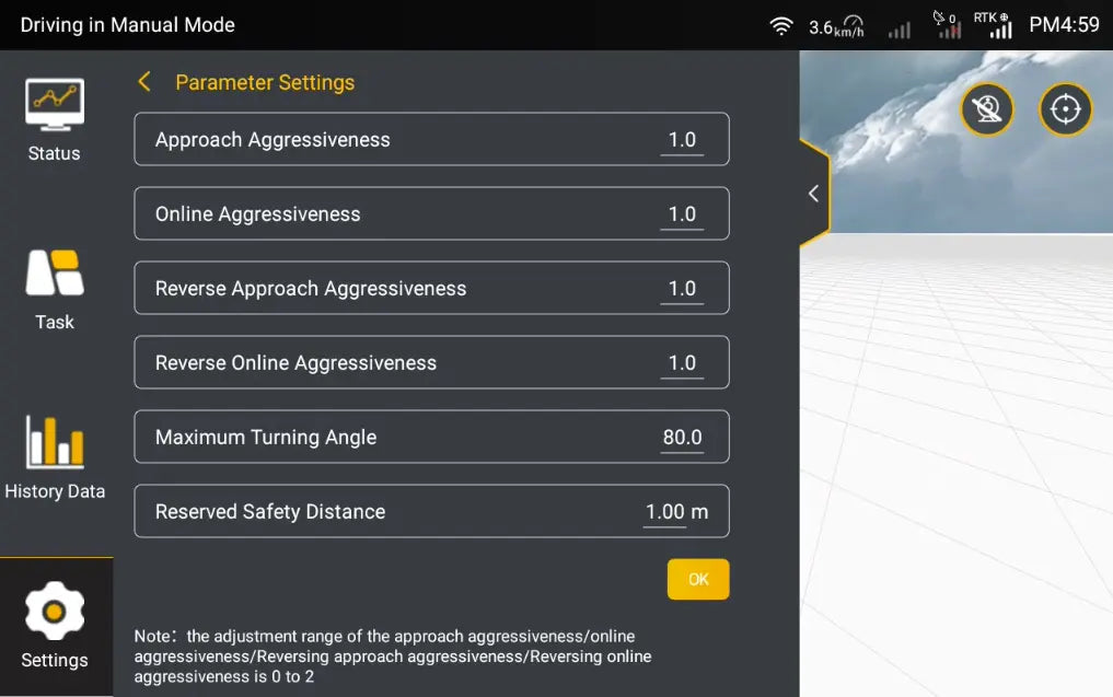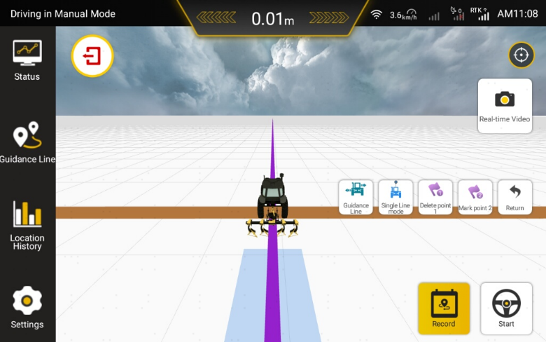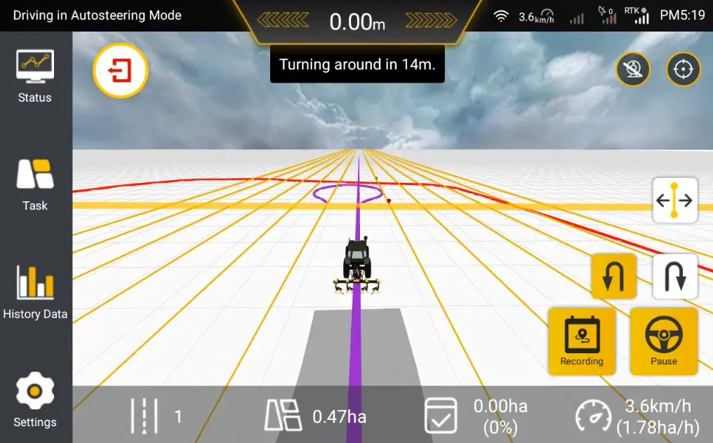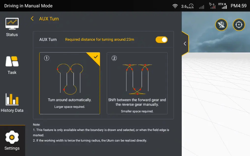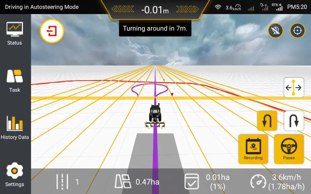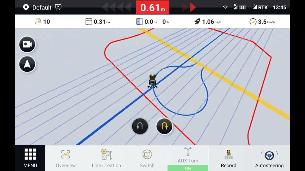 Étape 4 : En mode de conduite automatique, cliquez sur « ← » ou « → » sur la ligne de guidage nécessitant un demi-tour de base, et le véhicule fera demi-tour automatiquement après avoir atteint la position de demi-tour.
