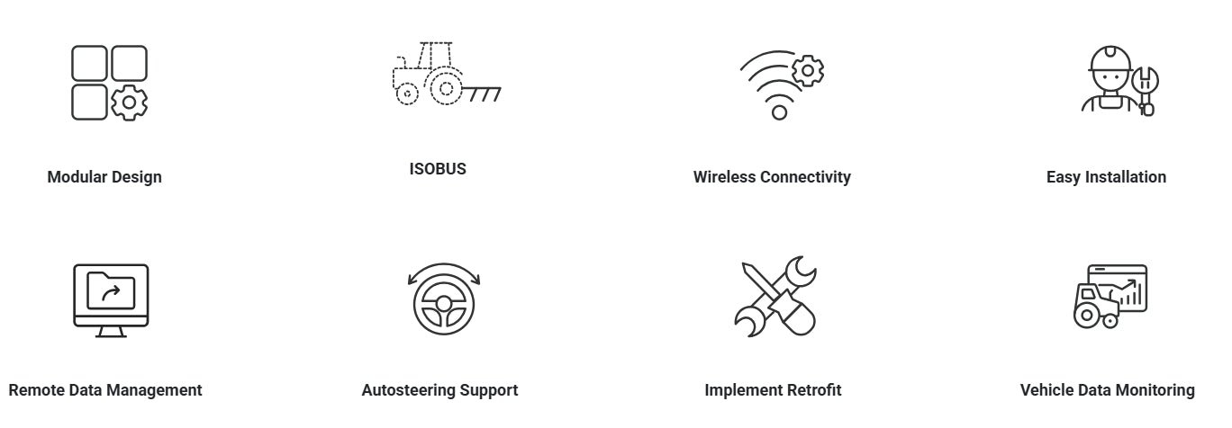 Avec un module ISOBUS sans fil, le système de guidage des machines agricoles offre des capacités VT/TC, facilitant la surveillance et le contrôle en temps réel des équipements. Cela rationalise les tâches essentielles comme l'ensemencement, la fertilisation et la pulvérisation, augmentant considérablement l'efficacité du travail et minimisant les déchets.