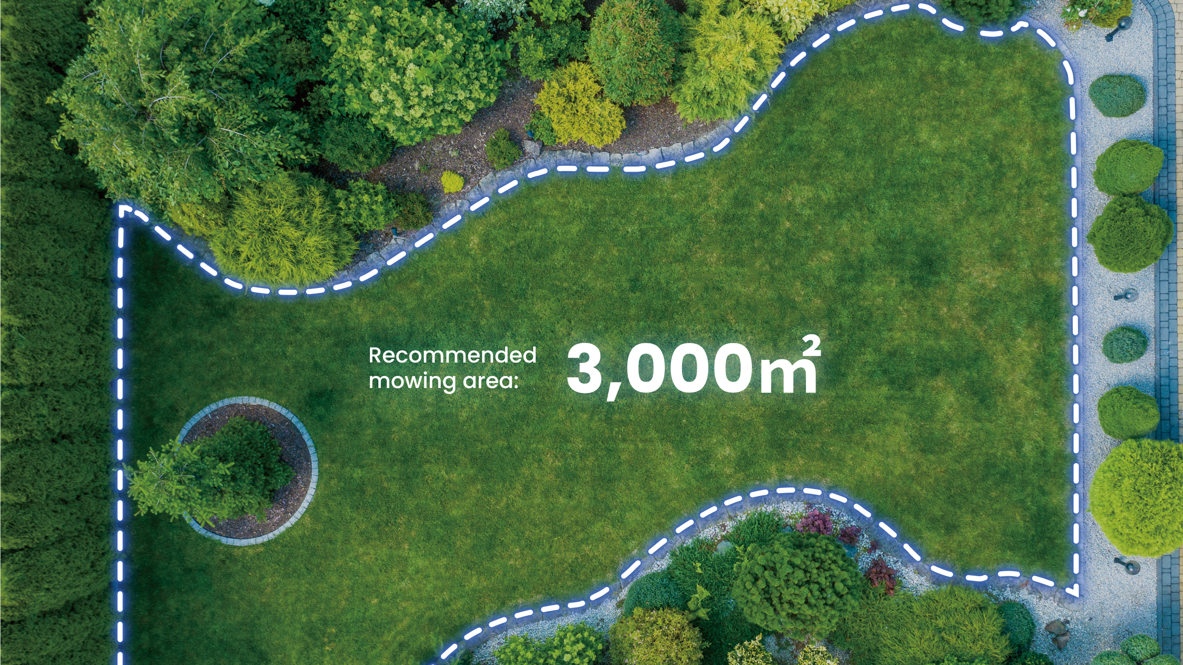 La tondeuse robot FL3000 est conçue pour des surfaces allant jusqu'à 3 000 m² (0, 75 acre) , ce qui la rend idéale pour les pelouses moyennes à grandes et les jardins spacieux.