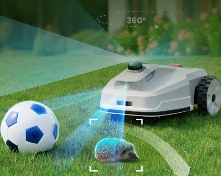La tondeuse à gazon robotisée sans fil intelligente assure une tonte automatique et sûre grâce à la vision sémantique, aux capteurs à ultrasons et de pare-chocs, à la détection de levage et à un arrêt d'urgence, offrant une protection complète sous tous les angles.